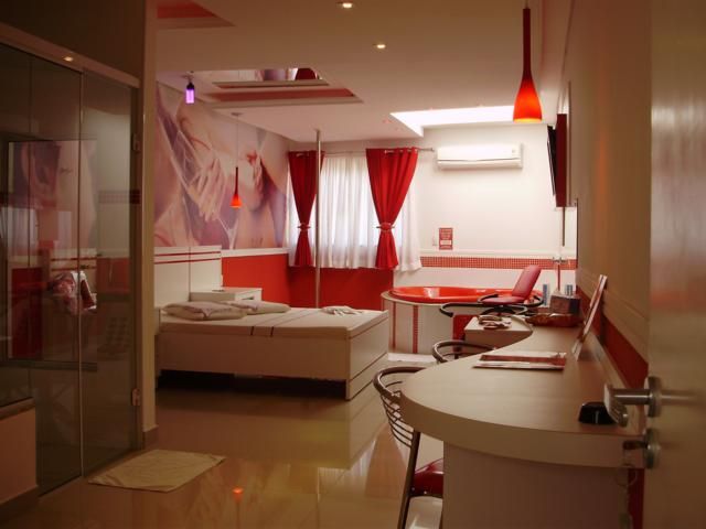 Hidromassagem, Ar Condicionado Quente e Frio, Frigobar, Sauna, PoliDance, Cadeira Erótica, TV LCD 40", DVD, luz negra, Entrada USB, Entrada, wi-fi,Teto Solar, Secador de Cabelo, Garagem p/ 2 Carros