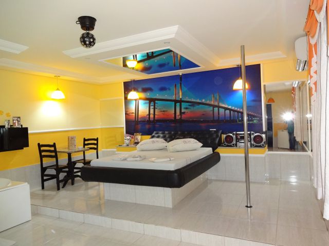 Hidromasagem, TV 32", Ar Condicionado Quente e Frio, Som, luz negra, Polidance,Cadeira Erotica, Ducha, Secador de Cabelo, Wi-Fi e Canal Erotico.
